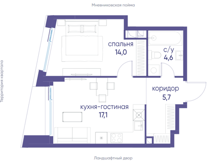Площадь от 41.4 м2