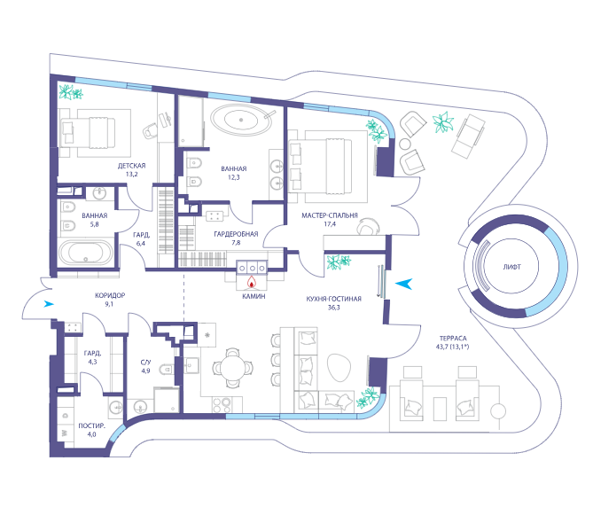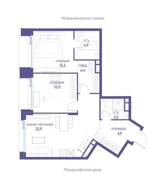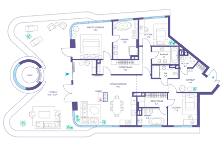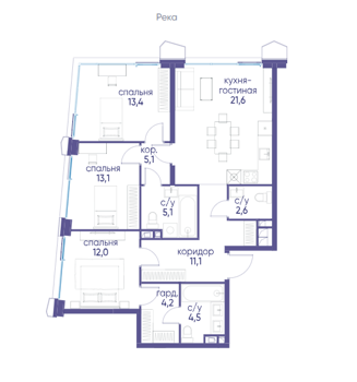Площадь от 87.6 м2