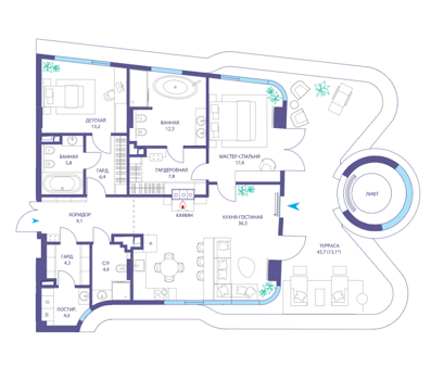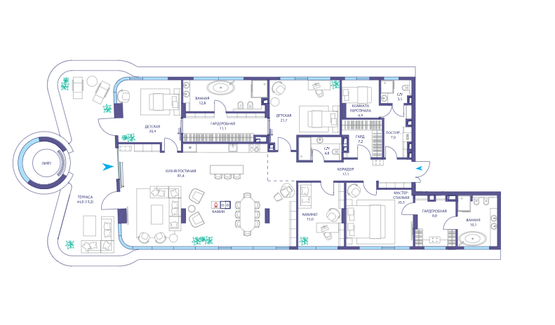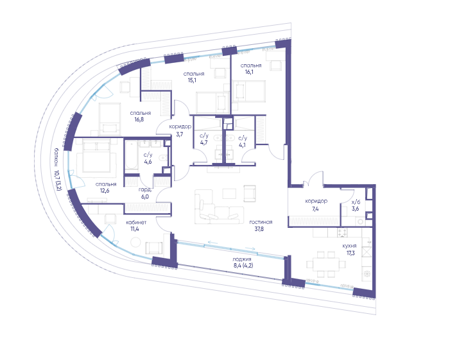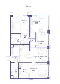 Площадь от 114.3 м2