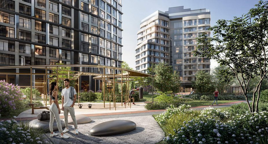 Зонированные пространства для всех возрастов: спортивные и детские площадки, места для спокойного отдыха и работы на свежем воздухе